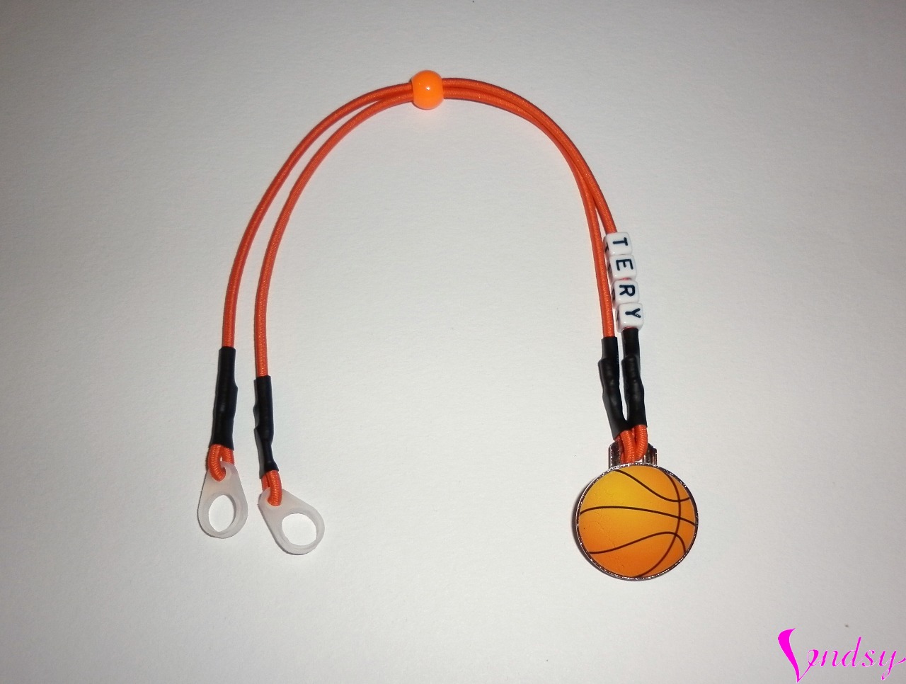 Černé šňůrky, délka 24-26 cm, kovový klip s basketbalovým míčem, průměr 2,5 cm. Lze udělat 1 nebo 2 šňůrky.