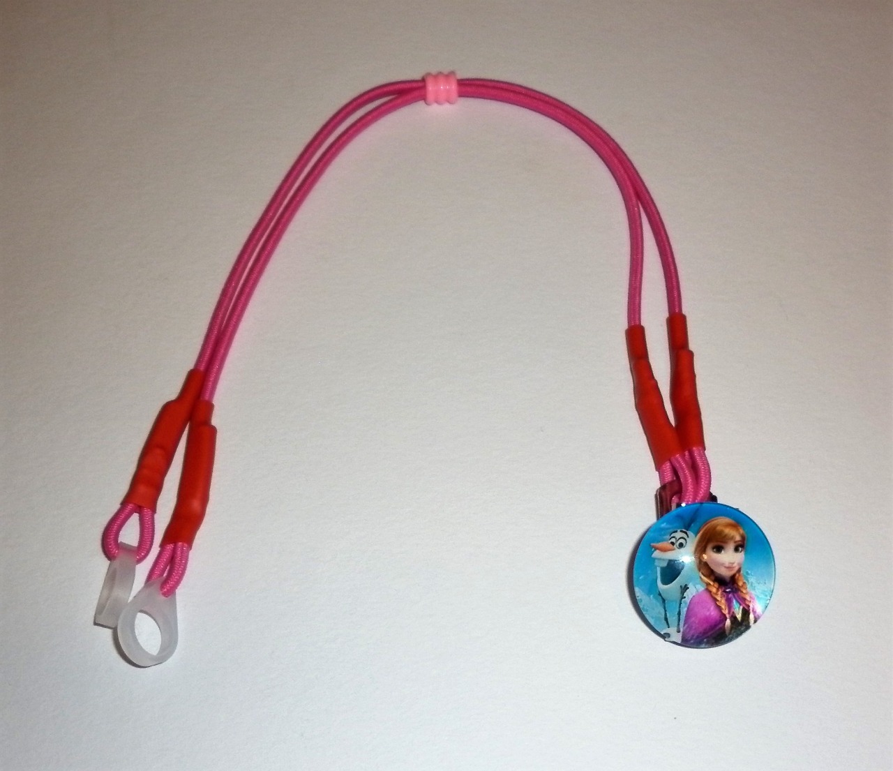 Barva šňůrek na přání, délka 24-26 cm, kovový klip s motivem z ledového království Anny a Elzy, průměr 2,5 cm. Lze udělat 1 nebo 2 šňůrky.